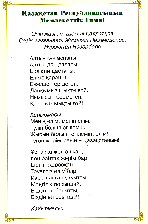 ҚАЗАҚСТАН РЕСПУБЛИКАСЫНЫҢ МЕМЛЕКЕТТІК ГИМНІ